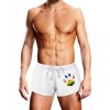 Calção de banho masculino Prowler Pride branco com detalhes LGBTQ e tecido leve de secagem rápida.