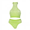 Conjunto neon com gola de tartaruga e tanga de cintura alta ativado por UV para um visual moderno e impactante.