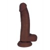 Este poderoso dildo de 20,5 cm apresenta um aspeto realista, desde a glande até ao eixo subtilmente curvado e os testículos redondos e firmes. É fabricado em PVC reforçado, sem ftalatos nem látex.