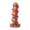 Plug anal em silicone vermelho, com design espiralado para estimulação intensa e segurança máxima.