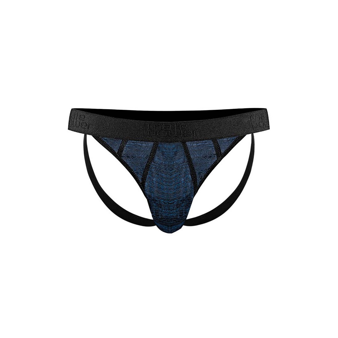 Jockstrap de tecido bicolor leve com toque macio e acabamento elástico confortável.