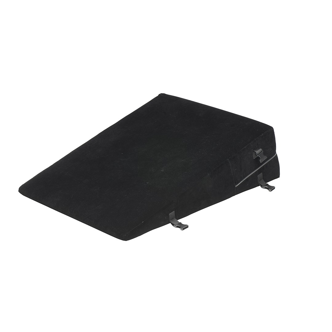 A superfície exterior macia mantém o contacto sensual com a pele, enquanto a camada interior protege a espuma da humidade. Este ecncosto preto e aveludado combina na perfeição com qualquer decoração em tons escuros ou neutros. Pode deixá-la discretamente na cama, atrás de outras almofadas, e utilizá-la como apoio enquanto se senta. É uma peça simples, mas indispensável para quem deseja uma colecção de acessórios de quarto verdadeiramente excitante.