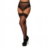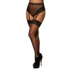Tanga de cintura alta, em malha e renda, com laço de cetim nas costas e ligas ajustáveis. Um toque sensual e elegante para um visual irresistível.