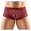 Os calções de realce da Svenjoyment são confeccionados em renda floral vermelha escura e possuem uma cintura elástica revestida de tecido. O material é macio e elástico, garantindo um ajuste extremamente confortável.