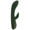 O Luxuoso Vibrador Rabbit da Emerald Love by You2Toys é perfeito para a estimulação dupla - pode estimular simultaneamente a vagina e o clítoris. É grande e sensualmente curvado para que possa alcançar facilmente o ponto G. É também maravilhosamente flexível, o que significa que se pode adaptar aos contornos íntimos durante a estimulação sincronizada. É feito de silicone aveludado e macio para uma fácil inserção e máximo conforto durante o prazer. O luxuoso vibrador rabbit tem um design elegante em verde-esmeralda e tem também pormenores dourados apelativos. A sua textura de diamante na pega significa que é fácil de segurar e os botões também facilitam a sua utilização.