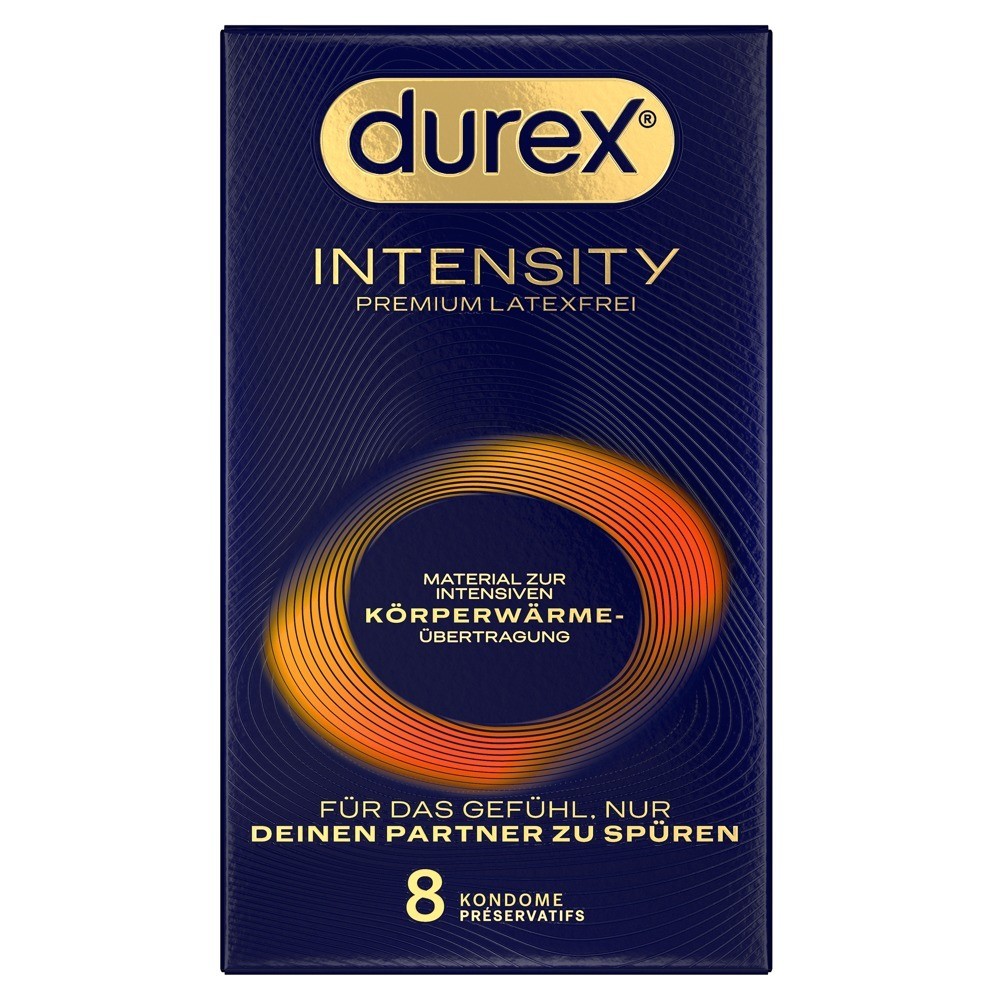 Os preservativos Intensity da Durex, extremamente finos e sem látex, são fabricados em nitrilo, proporcionando uma transferência intensa do calor corporal e a sensação de que apenas se sente o parceiro. O seu tamanho extra (largura nominal de 61 mm) garante um maior conforto durante a utilização. Estão generosamente lubrificados com um lubrificante à base de silicone.