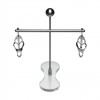 Torre BDSM em aço inoxidável com pinças de mamilo ajustáveis, intensidade regulável e design estável para jogos de dor.