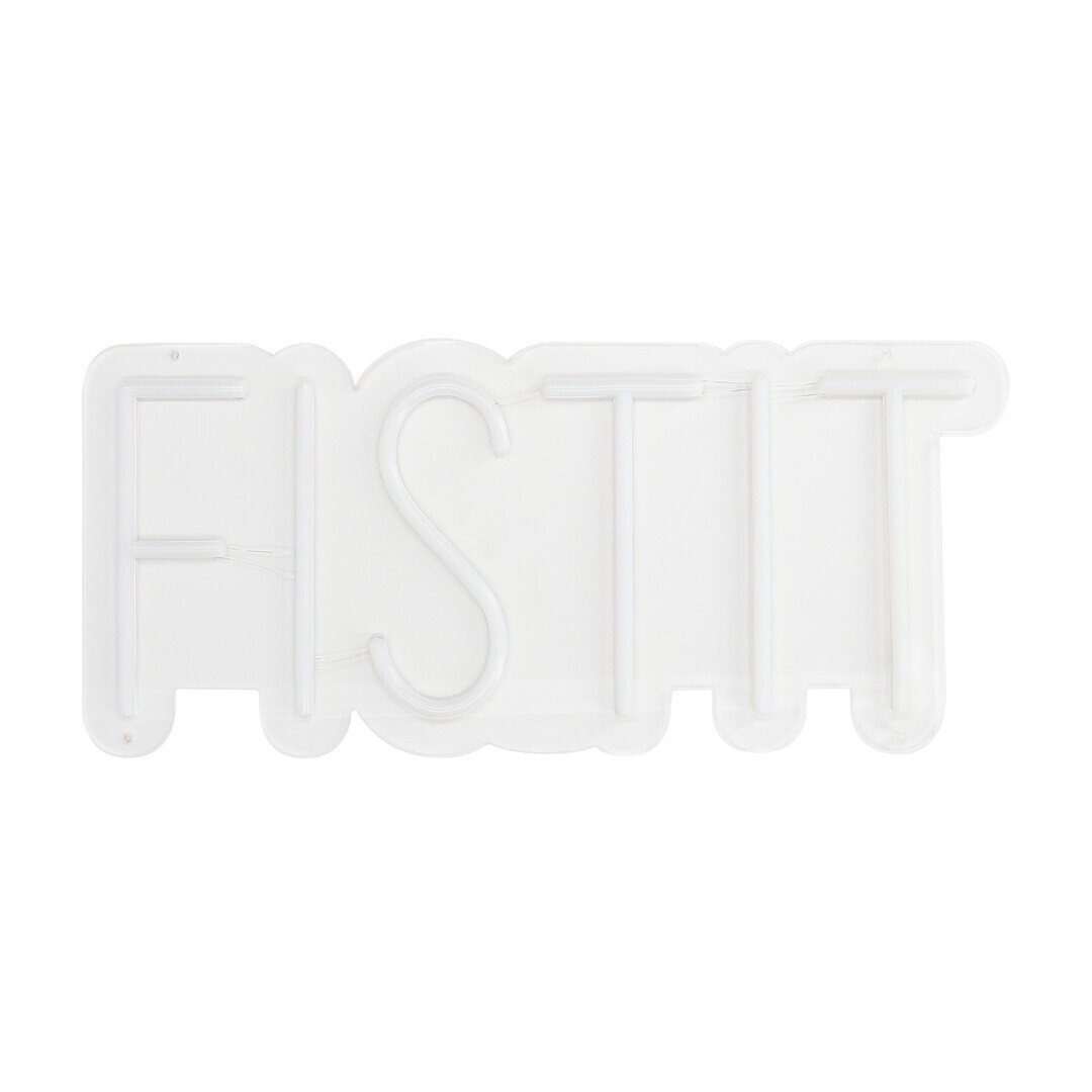 Este elegante sinal néon LED FIST IT é o toque perfeito para qualquer loja, criando um ambiente moderno e cheio de personalidade. Fornecido com adaptador UE, parafusos de fixação e corrente de suspensão, está pronto a instalar de forma simples e segura.