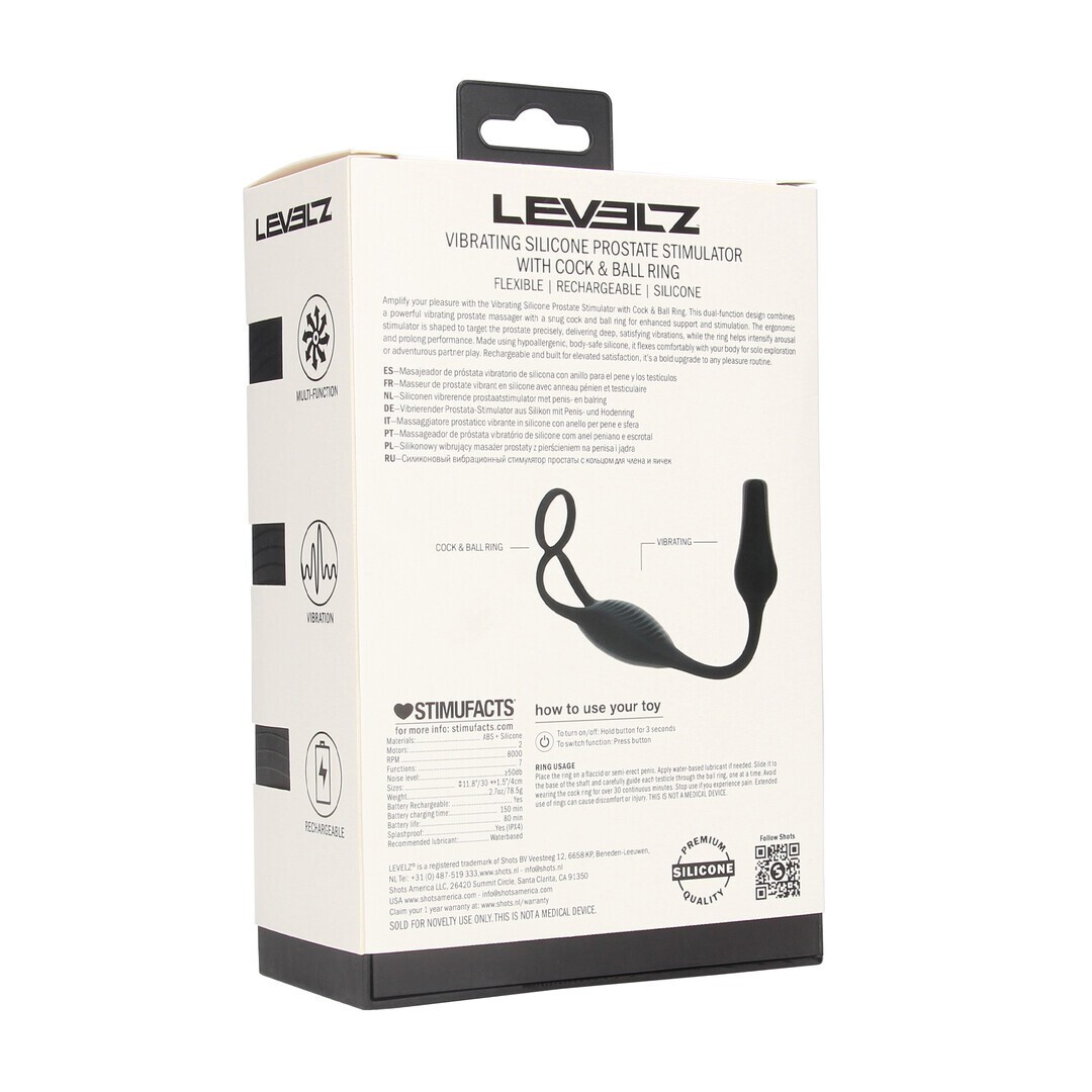 ESTIMULADOR DE PRÓSTATA EM SILICONE COM VIBRAÇÃO E ANEL PARA O PÉNIS LEVELZ
