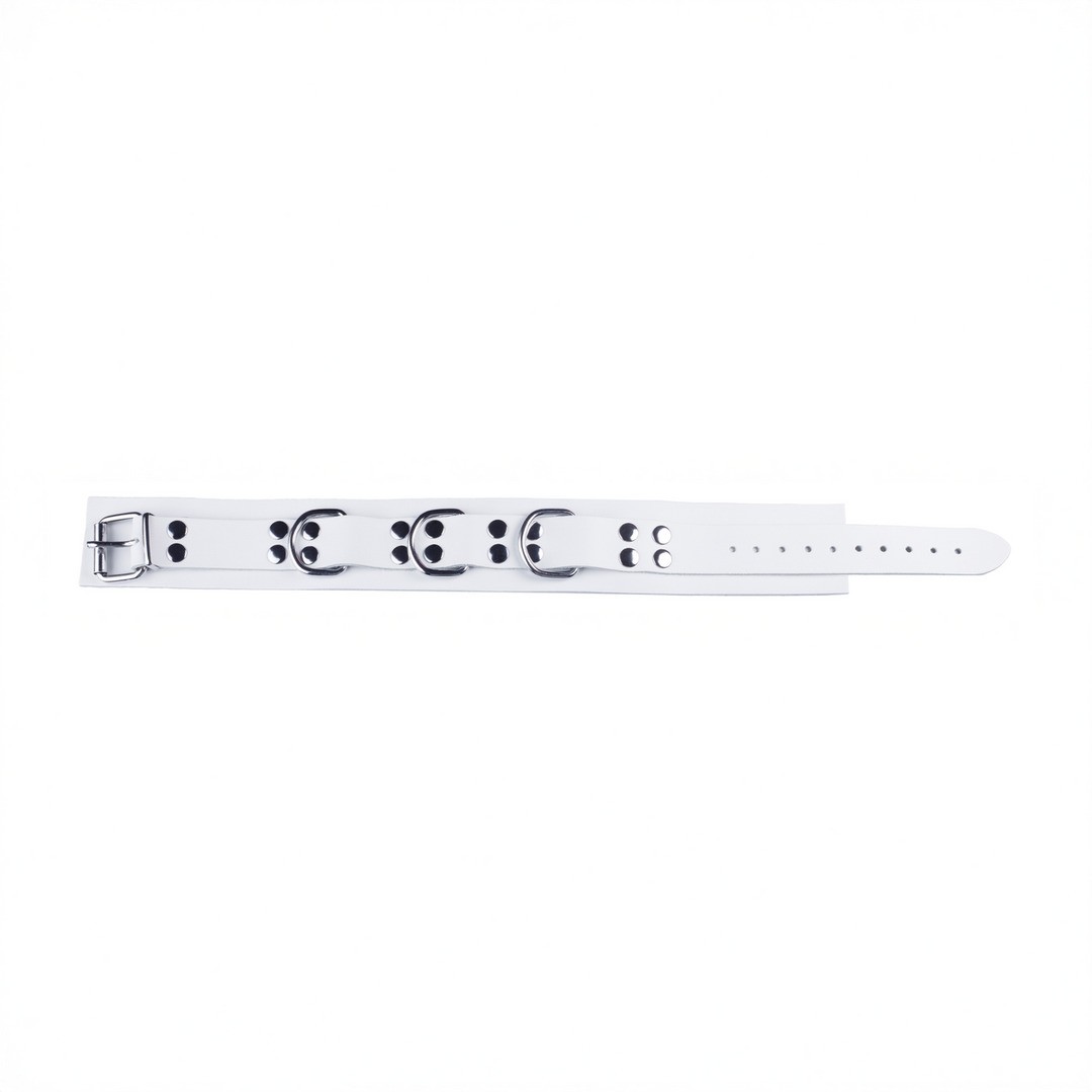 Coleira de couro da gama Ultra, concebido para reforçar um estilo SM marcante e sofisticado. Com 5,5 cm de largura, envolve o pescoço de forma firme e confortável. Ajustável para circunferências entre 38 e 52 cm, adapta-se facilmente a diferentes utilizadores. Os fechos, rebites e argolas em metal conferem resistência, durabilidade e um visual robusto.