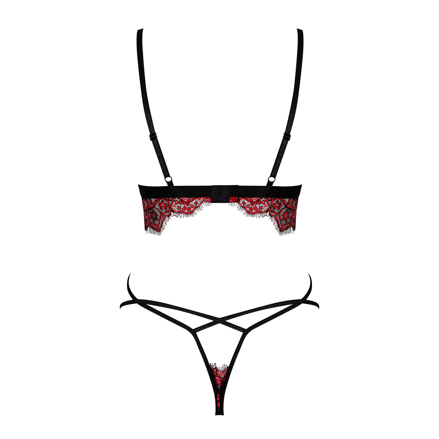 Do you have a romantic evening with your loved one ahead of you and you have no idea what to surprise him with? Take a look at the Redessia set: seductive lace, satin bows, and elastic straps that perfectly emphasize the hips. We assume that you yourself didn’t expect that you could fall in love so quickly, right? Now pay attention to the sexy combination of black and red, the phenomenal floral pattern, and eyelash lace that completes the edges. Redessia has stolen your heart in a playful style...