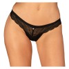Черные стринги Chemeris от Obsessive, выполненные из тонкого эластичного кружева. Модель отличается удобным кроем, украшена изящным ювелирным элементом спереди и имеет тонкий вырез сзади на эластичном поясе, что придает ей соблазнительный вид.