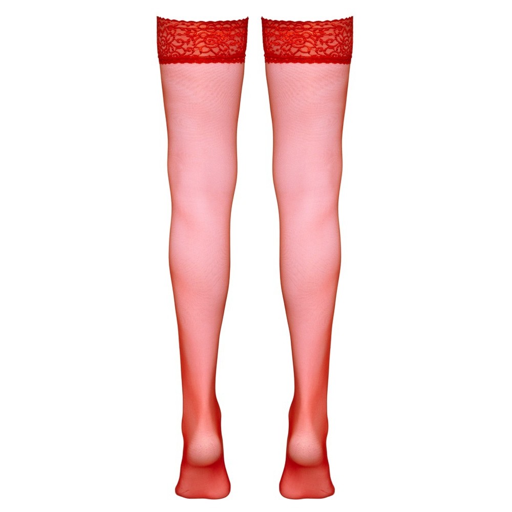 Чулки с кружевной верхней частью 7 см, ярко-красного цвета, идеально подходят для того, чтобы подчеркнуть ваши ноги и придать им соблазнительный вид. 17 ден, сертификация Oeko-Tex.