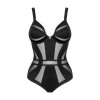 Черное боди Chic Amoria от Obsessive с небольшим украшением между чашками с косточками. Классический стиль, сочетающий матовые и прозрачные участки. Мягкое и эластичное по всему телу, обеспечивает идеальный комфорт. Широкие и удобные бретели, а также застежка-крючок на спине регулируются для идеальной посадки.