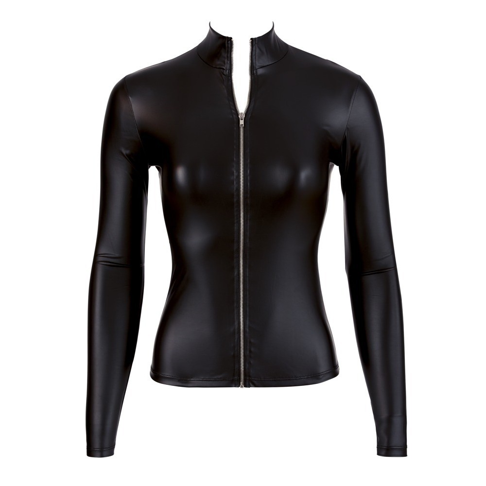 Какой мужчина не ценит соблазнительные формы? Этот черный топ подчеркивает женские формы, не раскрывая слишком много. С высоким воротником, небольшим стоячим воротником и длинными рукавами, топ с матовой блестящей отделкой выглядит очень интересно, плотно прилегает к коже и облегает талию.