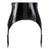 Широкий пояс для чулок от Black Level, полностью из блестящего черного винила, с пятью декоративными металлическими пряжками спереди. Встроенные моделирующие косточки и застежка-крючок сзади, регулируемая в двух положениях, гарантируют идеальную посадку. Четыре ремешка для чулок регулируются по длине.