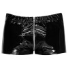 Классические шорты Black Level полностью изготовлены из блестящего черного винила. Они слегка эластичные, обеспечивая плотное, но удобное прилегание. Имеют практичную и провокационную металлическую застежку с мягкой подкладкой спереди.