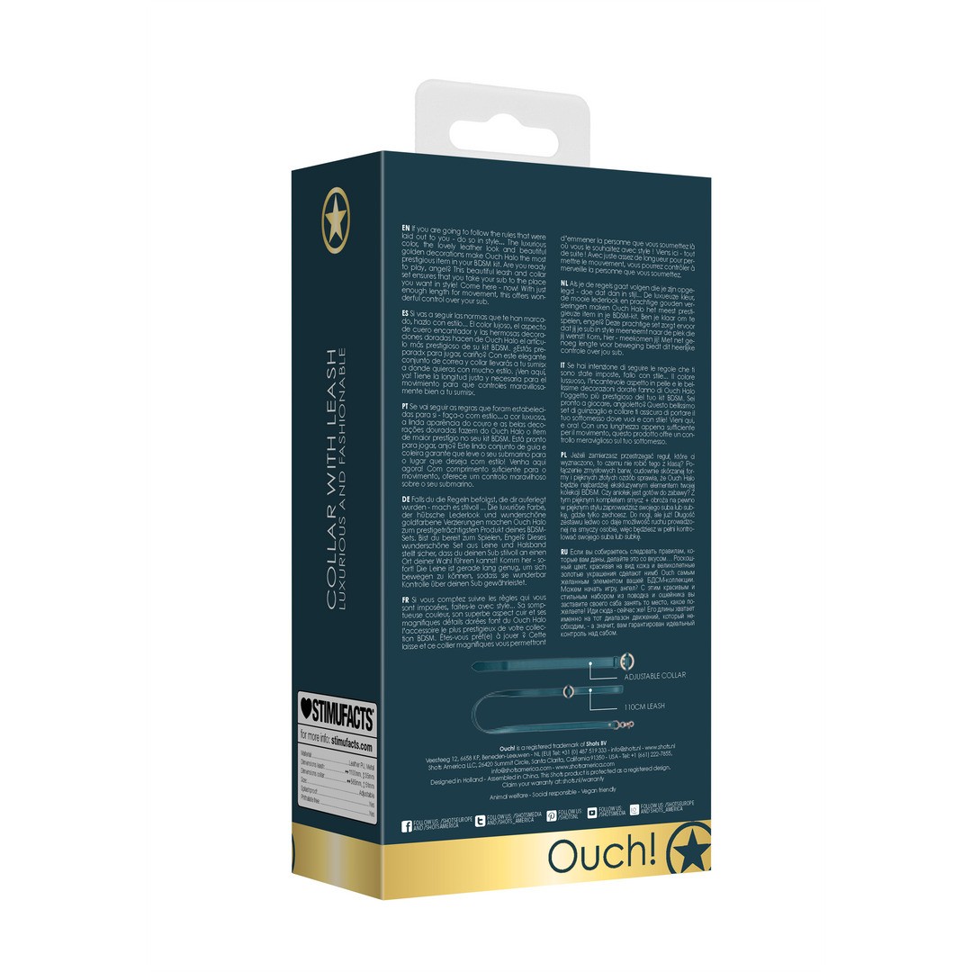 Если вы собираетесь следовать правилам, делайте это стильно! Роскошный цвет, привлекательный вид кожи и элегантные золотые аппликации делают Ouch! Halo самым престижным предметом в вашем наборе для BDSM.