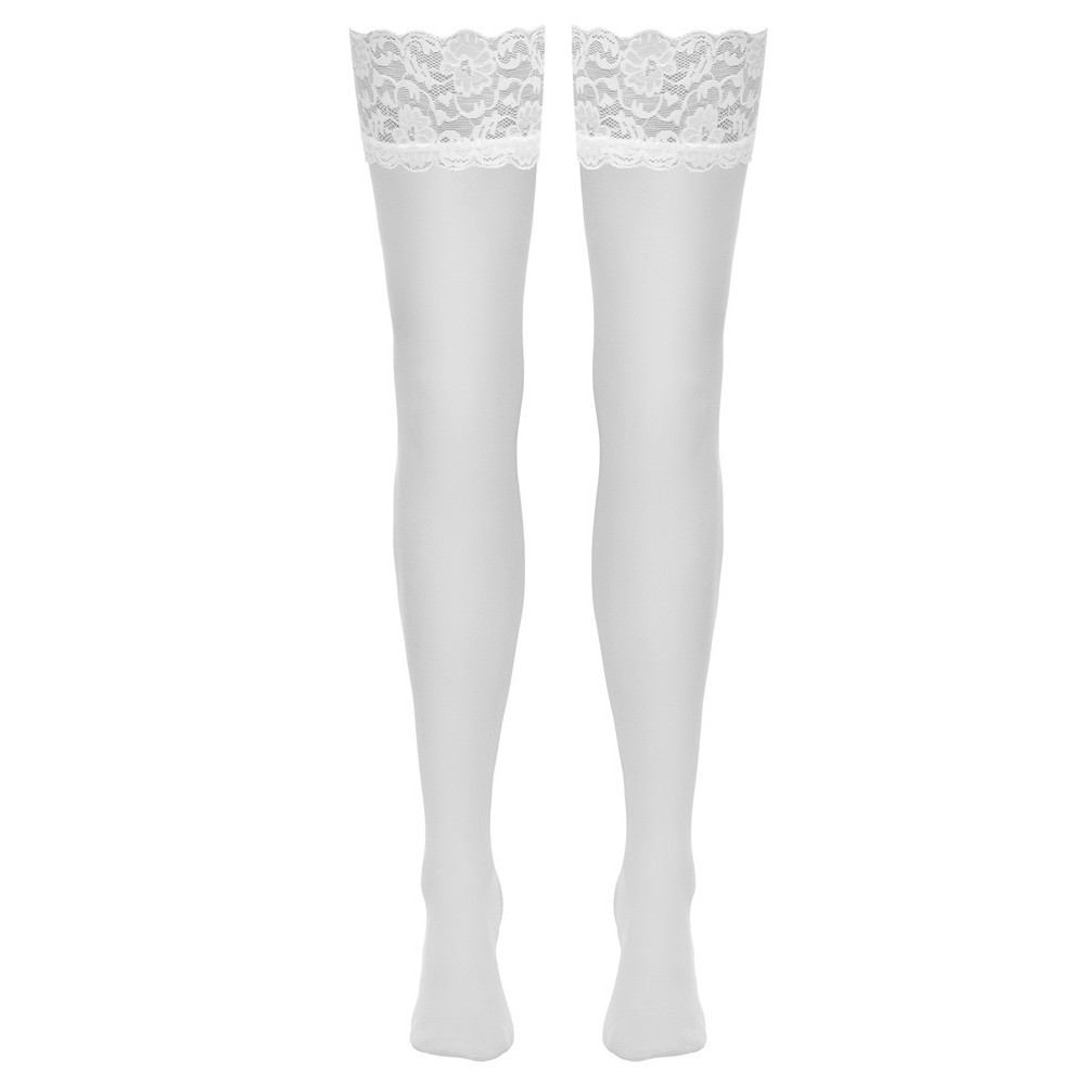Бархатисто-мягкие белые чулки от Cottelli LEGWARE имеют эластичное кружево шириной 9 см по верху. 20 ден. Сертифицированы Oeko-Tex.