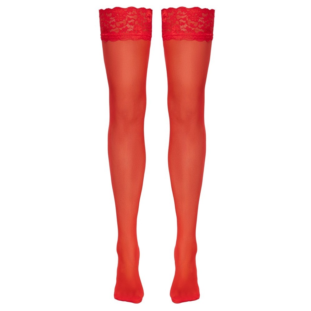 Бархатисто-мягкие красные чулки от Cottelli LEGWARE с эластичным кружевом шириной 9 см вокруг верха. 20 ден. Сертифицированы Oeko-Tex.