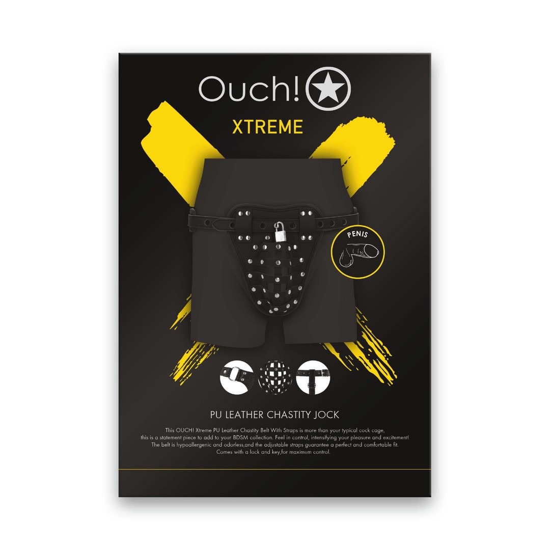 Инфографика Pu Leather chastity jock Sell sheet (OU1032BLK) на английском языке.